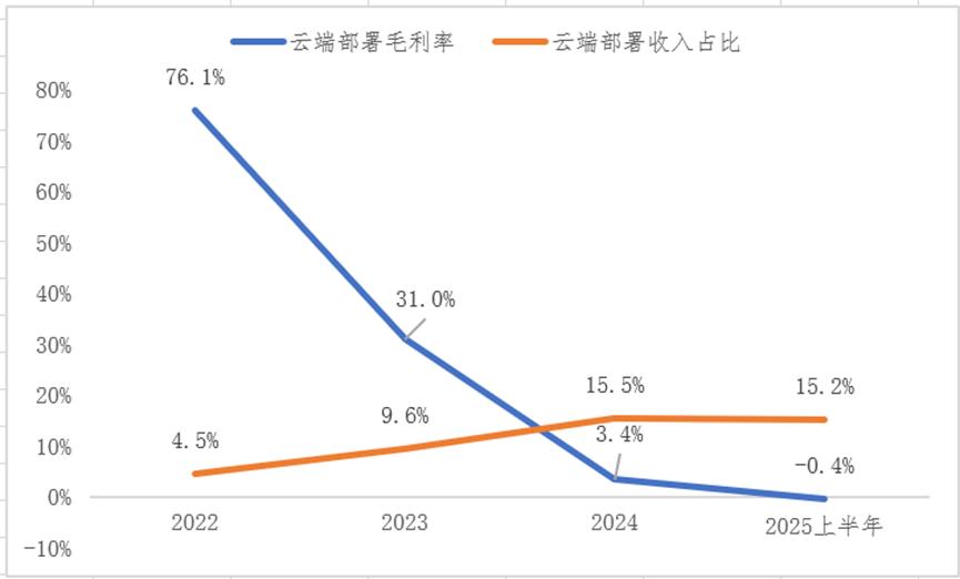 2025年上半年,包含API调用业务的“云端部署”收入仅占比15%,业务毛利率为负值。同时,由于云端业务需要模型迭代、算力建设,耗费了高昂的研发成本,公司的亏损也在加速扩大。