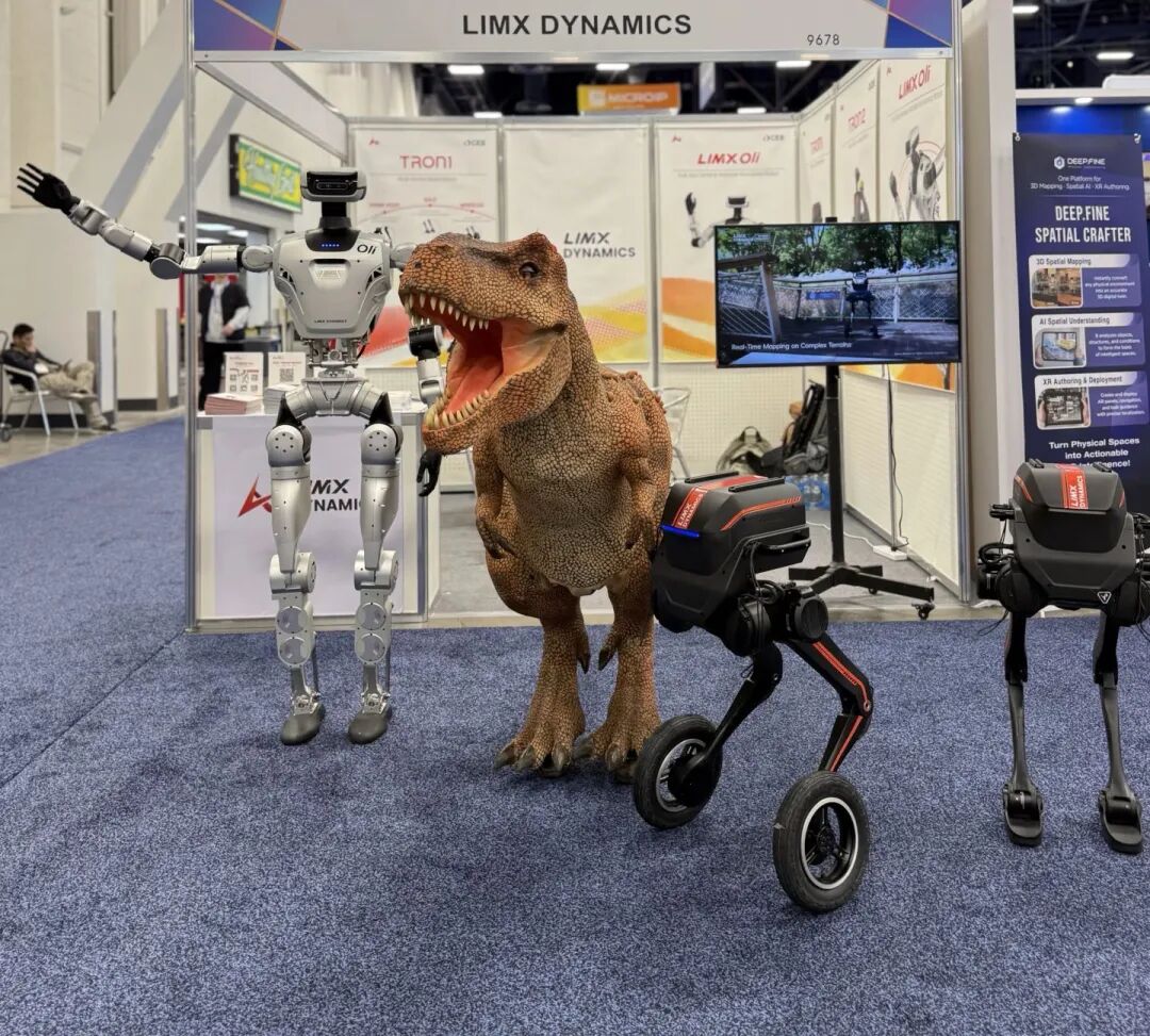首届机器人马拉松大赛亚军松延动力携核心产品“小顽童N2”参展,展示了其高性能关节模组和动力系统;逐际动力的Tron2,可实现双臂、双足、双轮足三种核心构型的快速切换,还支持人形、四足等形态重构。