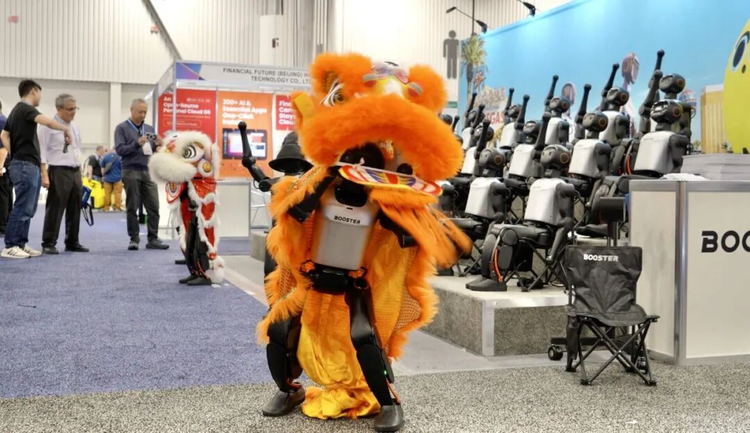 加速进化,应该是本次参展商中机器人出场数量最多的企业,数十台Booster K1组成机器人矩阵,带来招财猫、新年祝福等不同主题的齐舞表演。