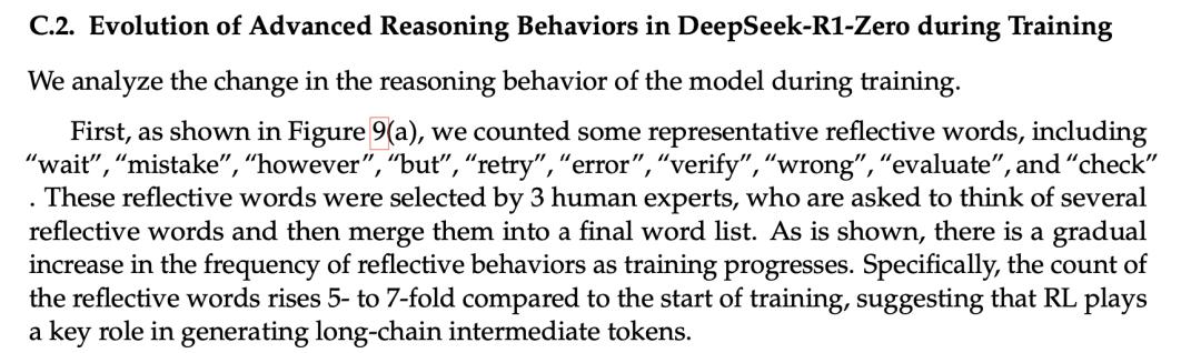 在v1版本中,DeepSeek展示过一个现象:随着思考时长的Scaling,模型会在某个时刻突然出现学会「反思」。