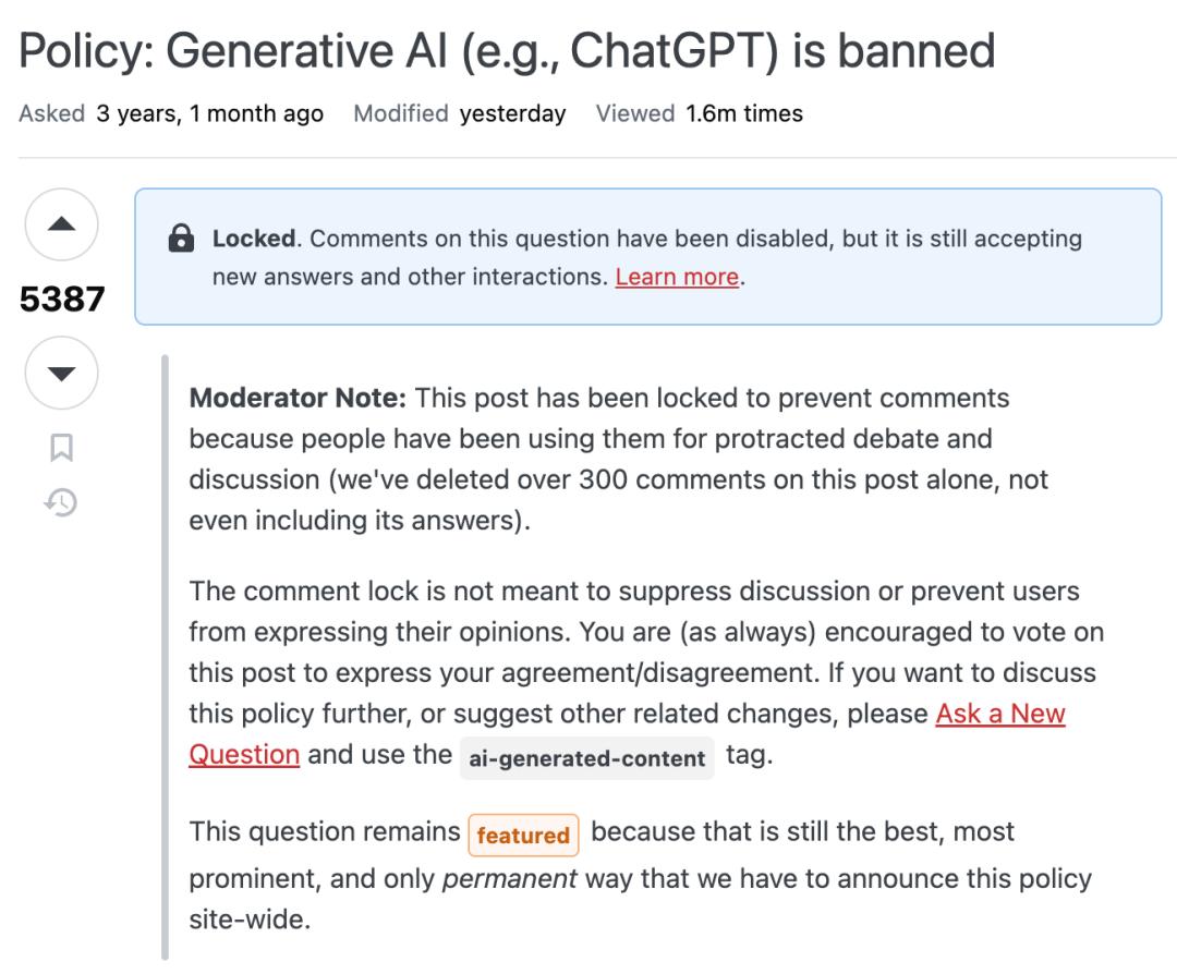 于是,当时Stack Overflow立即出台了一项备受关注的决定:禁止AI生成内容作为回答。