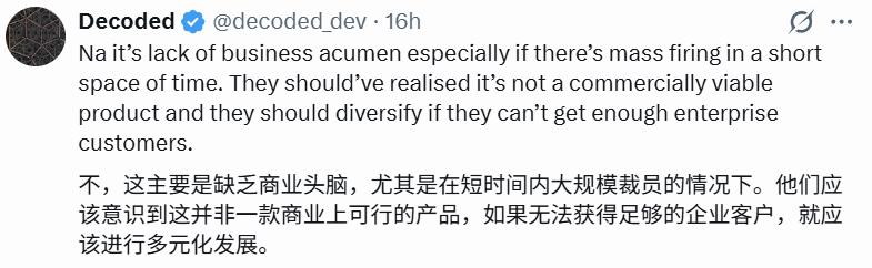 在 X 上,技术作家 Bilgin Ibryam 评论说:「这并非技术失败,而是商业模式的失败。」