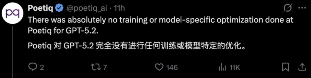 Poetiq表示,整个过程没有对GPT-5.2进行任何训练或者特定优化。