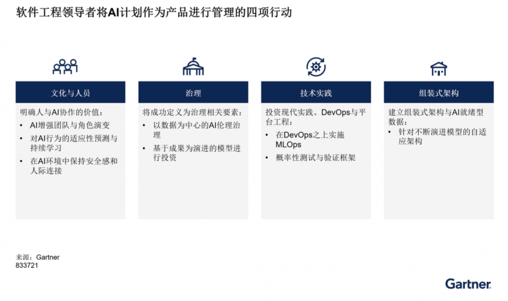 图1:软件工程领导者将AI计划作为产品进行管理的四项行动