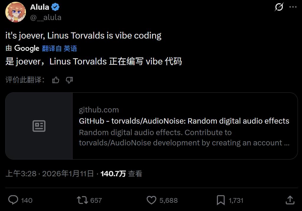 时代变了,就连 Linus Torvalds 现在也氛围编程(Vibe Coding)了。