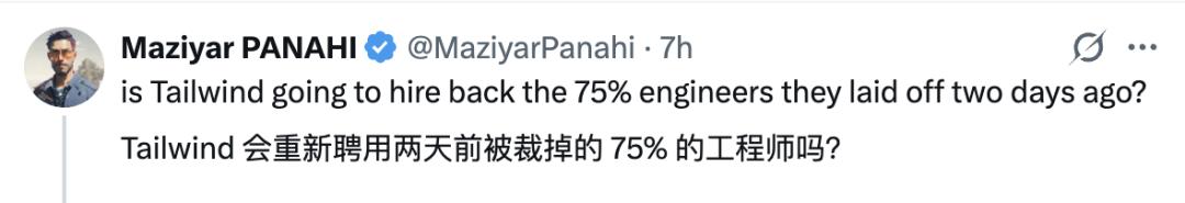 事实上,就在Wathan发表这个帖子的前一天,公司75%的工程师丢掉了饭碗。