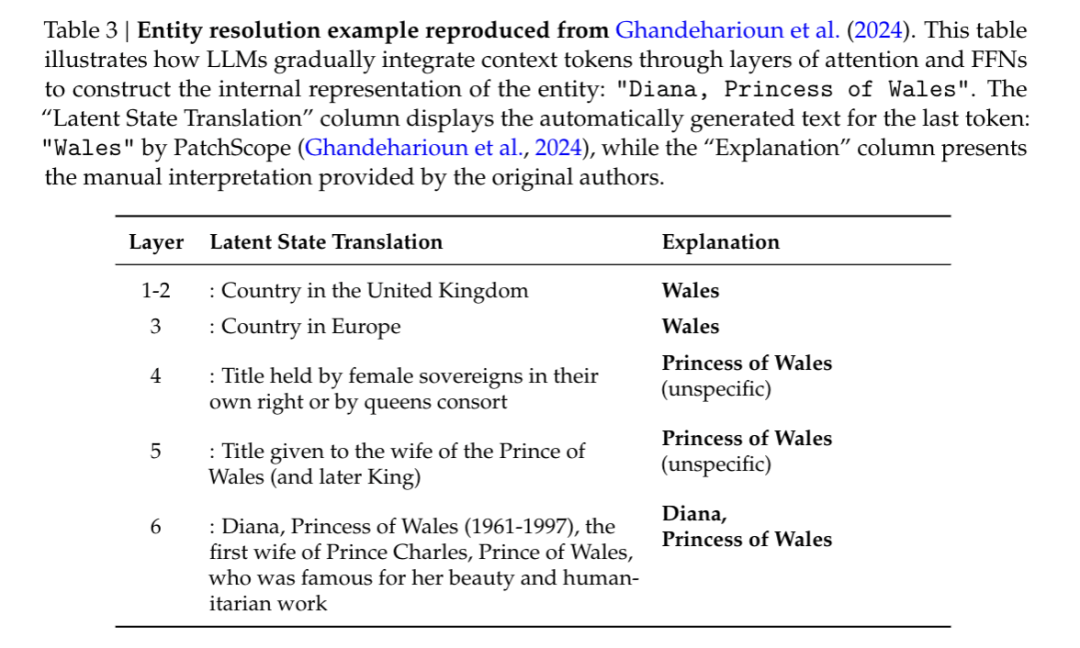 模型需要经过 6 层才能完成这个识别过程,前几层还在纠结”Wales 是英国的一个地区”、”Princess of Wales 是某种头衔”这些中间状态,最终才能“想起来”这是指戴安娜王妃。