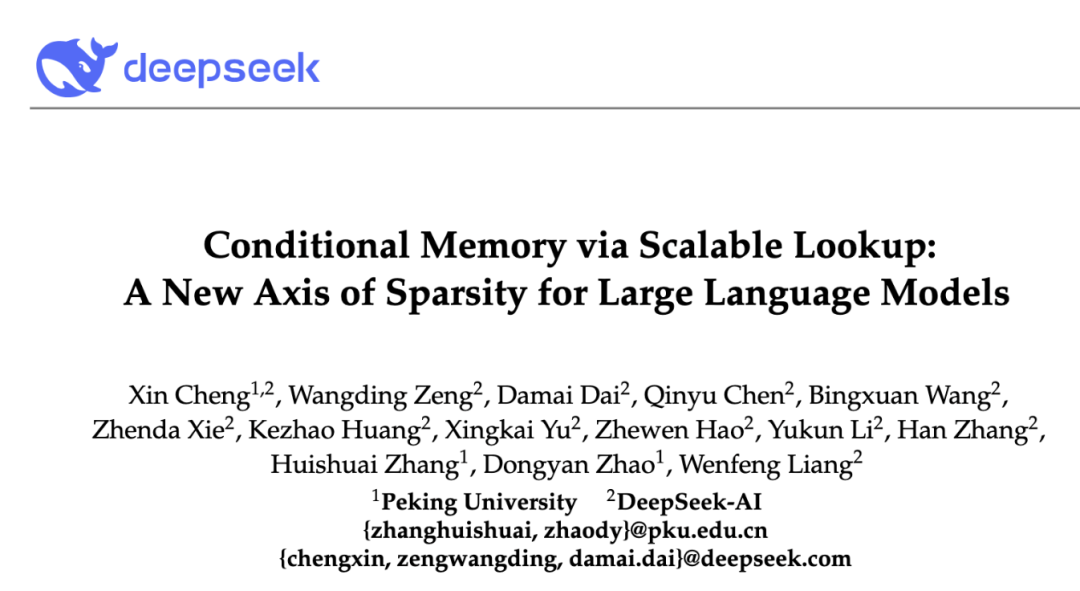 本文来自微信公众号:量子位(ID:QbitAI),作者:梦晨,原标题《DeepSeek 开源大模型记忆模块!梁文锋署名新论文,下一代稀疏模型提前剧透》