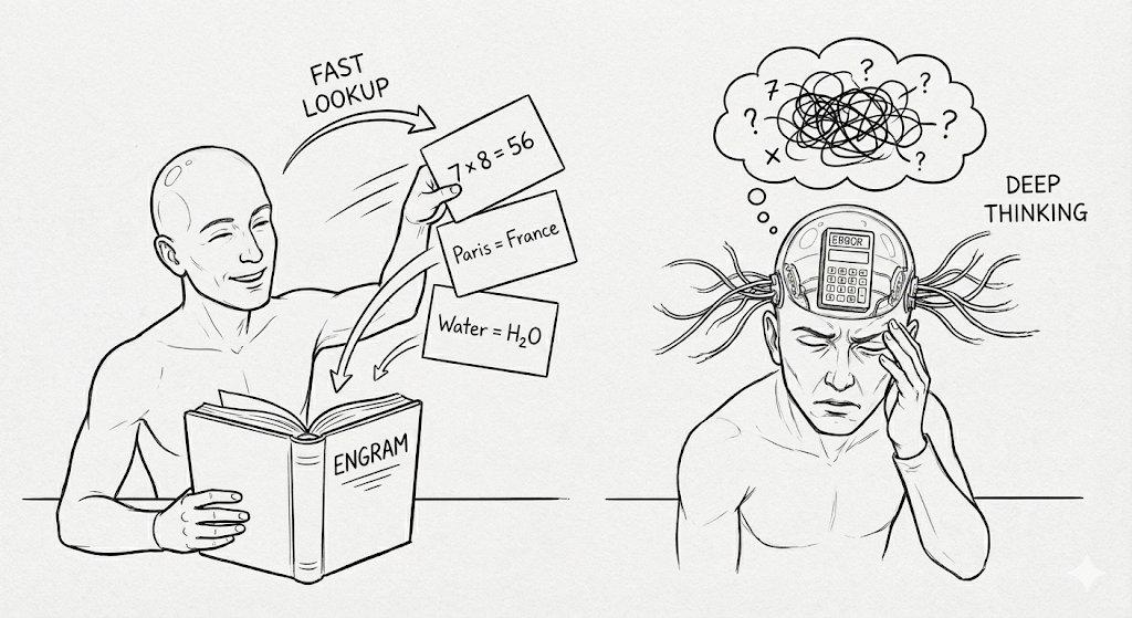条件计算解决了FLOPs,条件记忆解决了容量与模式检索,两线均可互补。