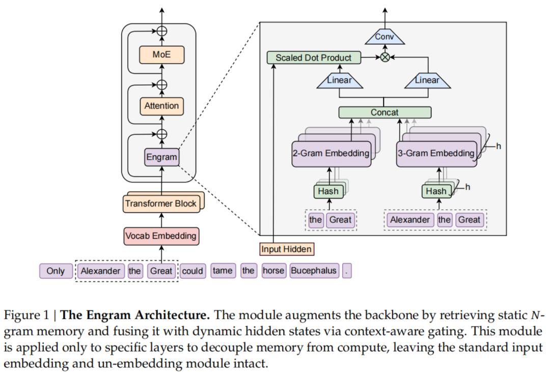 Engram负责存储与检索静态知识与局部模式