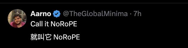 这项技术被网友调侃为“NoRoPE”(没有旋转位置编码)。
