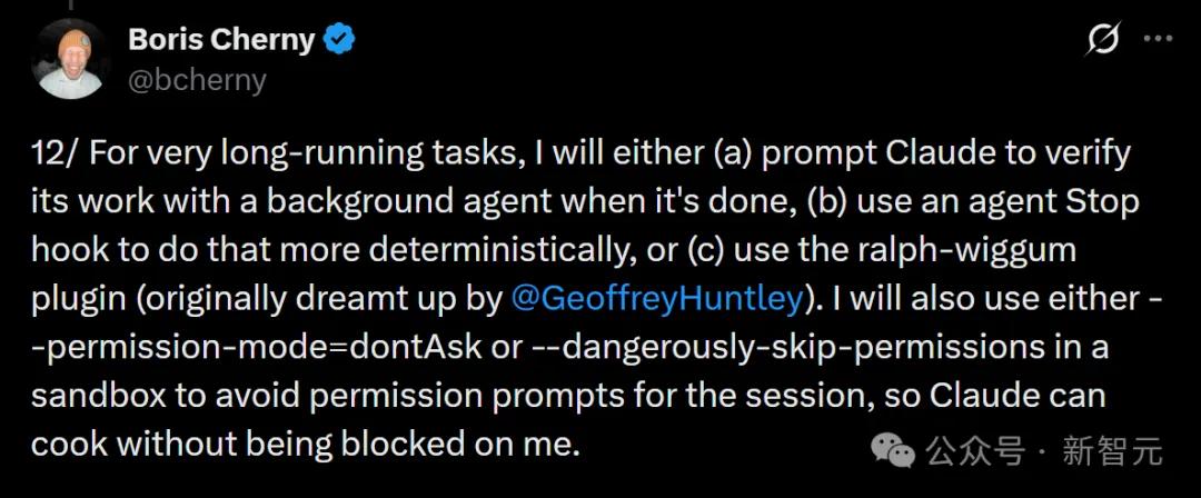 在第12部分,Boris提到,对于运行时间特别长的任务,他通常会采用以下几种方式,其中一种,就是使用ralph-wiggum插件。