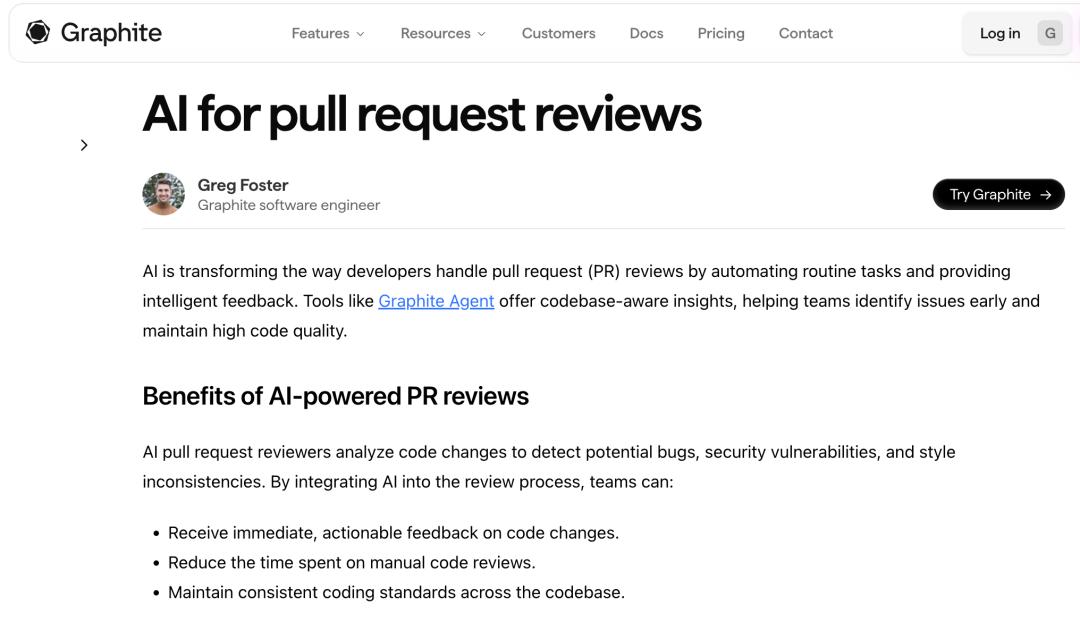 第一步是最简单、风险最低的:在你的代码库中接入AI驱动的代码审查工具。Graptile、CodeRabbit这些工具会在PR阶段自动检查代码质量、发现潜在Bug。