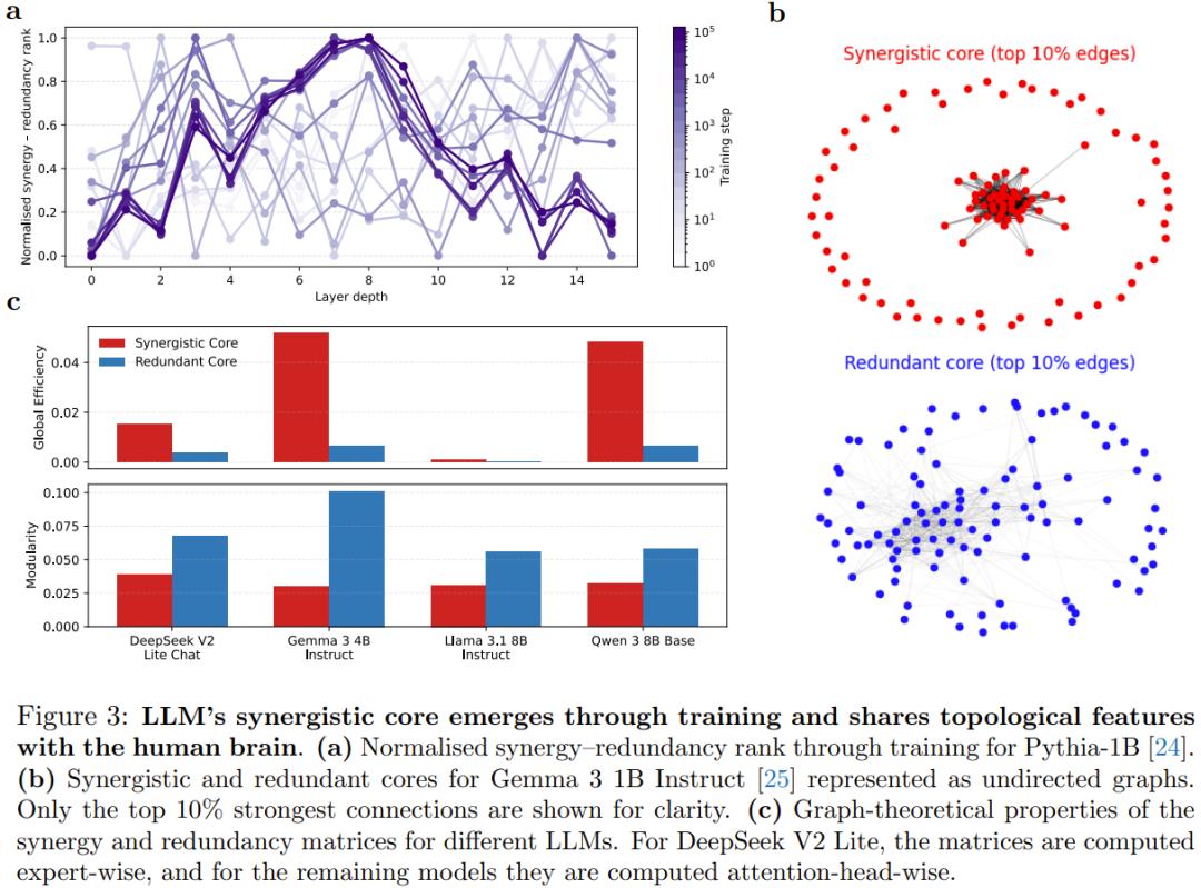 最近,来自帝国理工学院、华为诺亚方舟实验室等机构的研究人员发表了一篇新论文。该研究指出,大型语言模型(LLM)在学习过程中会自发演化出一种协同核心(Synergistic Core)结构,有些类似于生物的大脑。