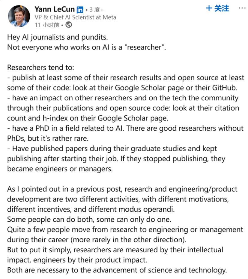 研究员的离职,外界普遍推测为两大原因:其一, Meta 的核心战略,在逐渐从技术研究专向商业化,杨立昆的学术作风越来越格格不入;其二,即使是杨立昆这样的“大家”,也需要向 28 岁的 Wang 汇报工作。原因二,表面上会被认为资历尚浅的年轻人不应指挥一众资深专家,究其根本却又导向了原因一。如前文所述,Wang任职CEO的ScaleAI是一家数据标注公司,核心业务是通过高效的组织运作模式将繁琐的标注工作通过劳务外包的形式实现高性价比的结果,反应出的是Wang善于运用商业链路打通 AI 技术的不同需求缺口。所以,Meta正在商业化道路上开起了快车,自研的Llama模型本身是否依旧有竞争力也已不是重点(虽然,Llama4被传测试数据造假),重金养技术专家的战略意义也就随之消亡。