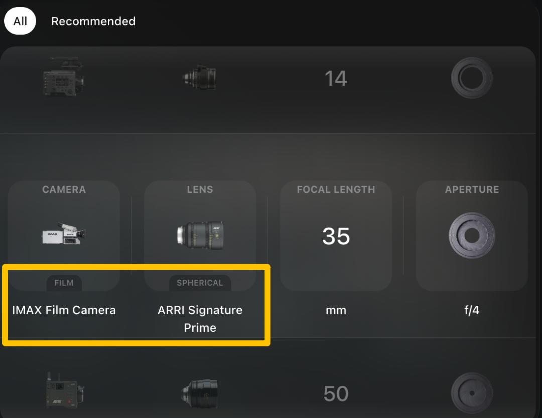 现在,用户的虚拟“摄影包”里,躺着的是一众如雷贯耳的名字:从好莱坞剧情片的宠儿ARRI Alexa 35,到以色彩科学闻名的Red V-Raptor,再到象征着宏大叙事的IMAX。