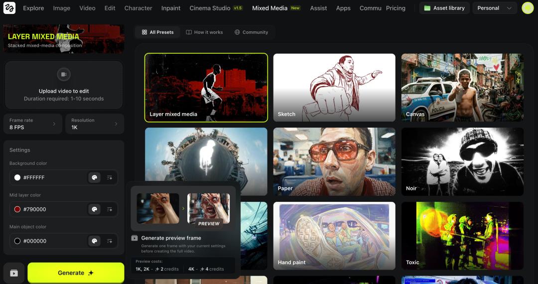 Higgsfield的核心价值,正是在于更彻底的“技术平权”。它将原本被高昂设备和复杂技术所垄断的电影级视听语言,下放给了每一个有创意的个体。
