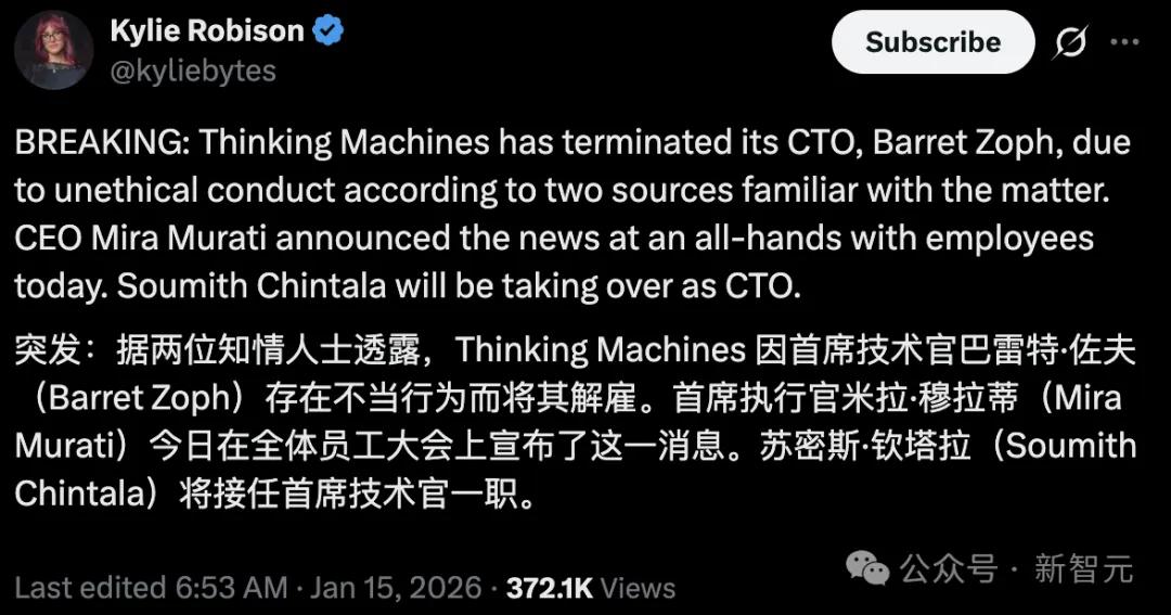 然而对于刚刚起步且雄心勃勃的Thinking Machines Lab而言,在成立不到一年的时间里失去包括CTO在内的两位联合创始人,无疑是一记沉重打击,将引发外界对其稳定性和执行能力的担忧。