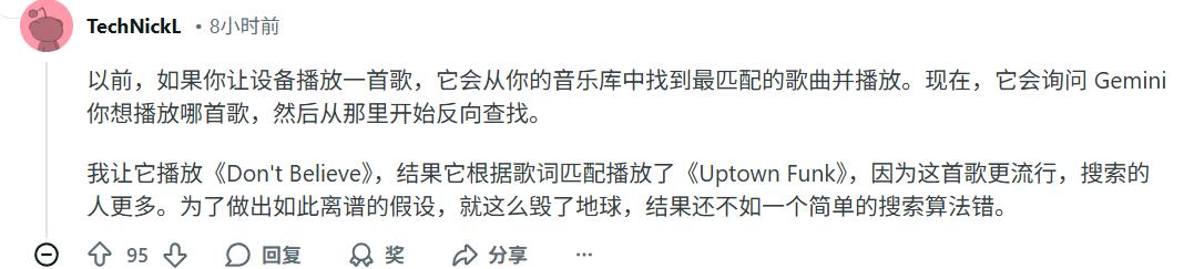 回到社区舆论,虽然连最基本的指令都出错,但网友们也承认,升级后的语音助手在理解复杂命令这件事上,确实更强了。