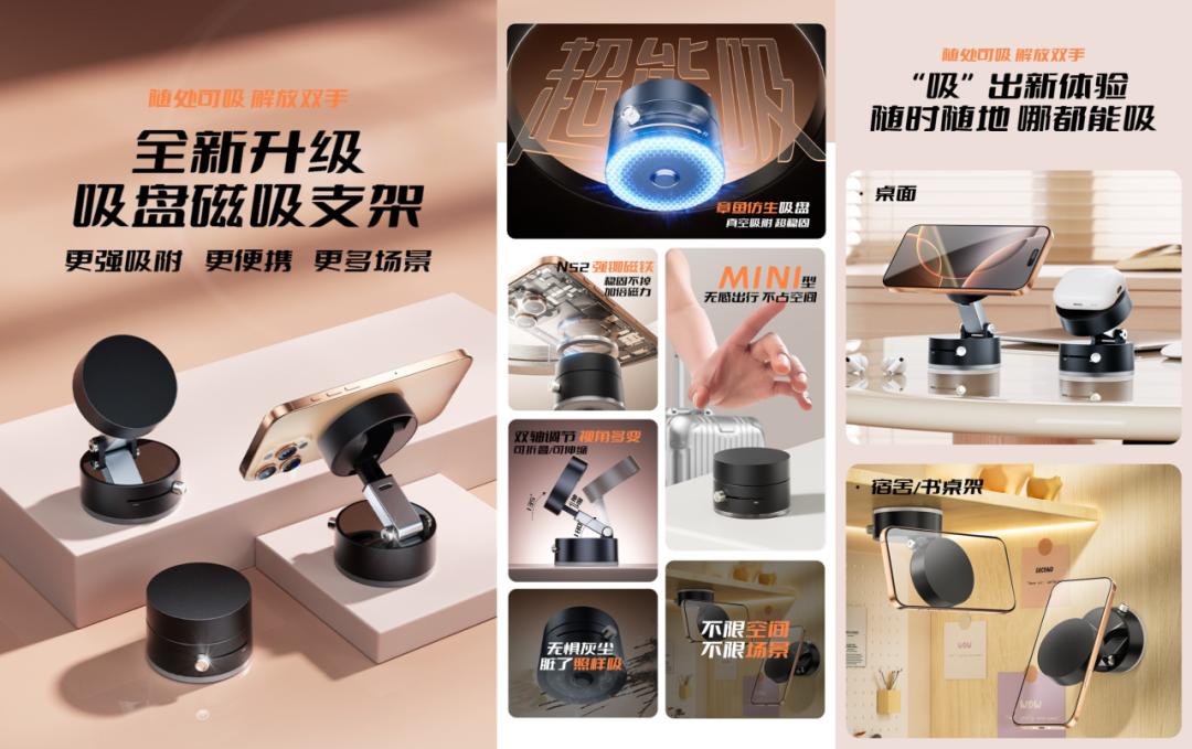 根据这个评论,AI给他提供了改进建议。一个是改材质,把支架从金属改成塑料,这样既能减轻重量,贴得更牢,更能降低成本;另一个则是从胶粘改成真空,从结构上解决贴不牢的问题,并且随处都能吸,不仅限于车载环境。