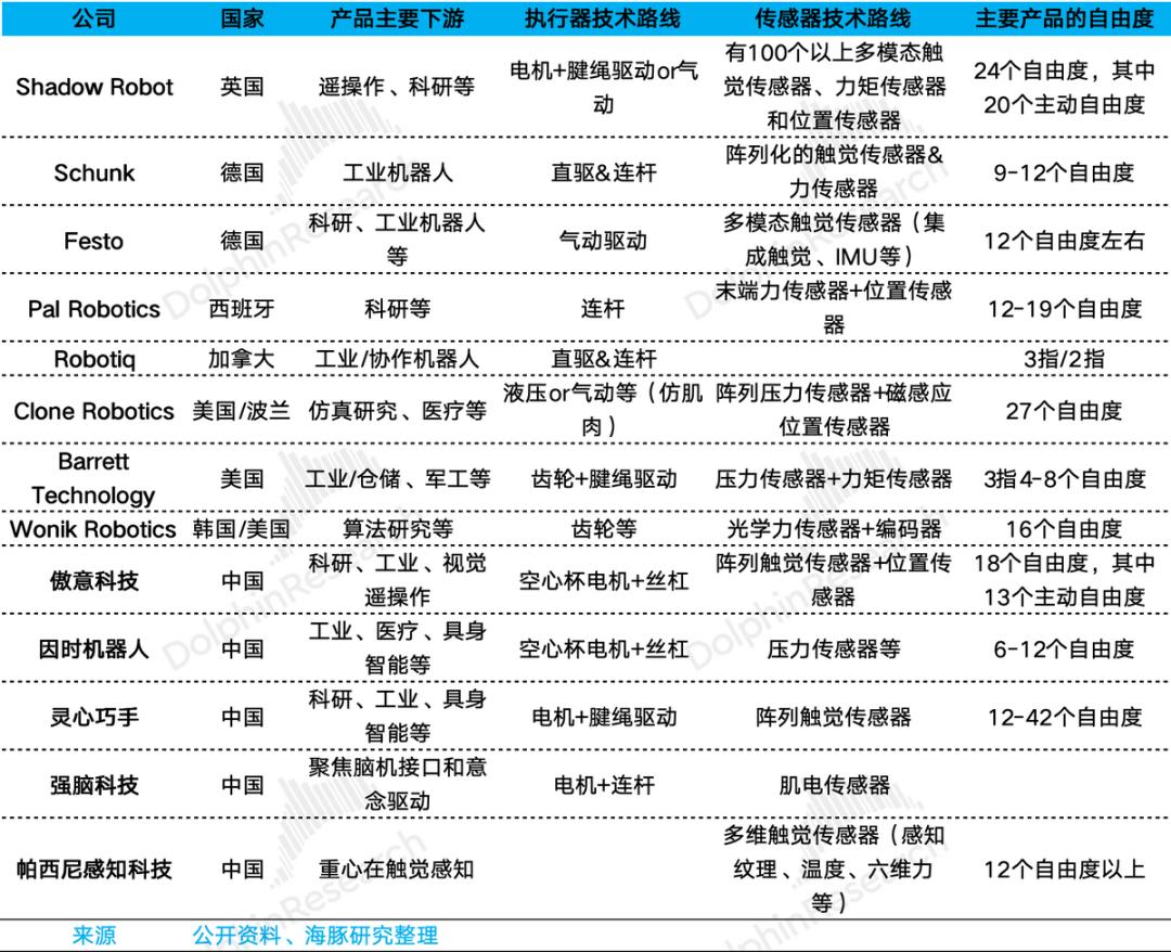 表:灵巧手公司梳理