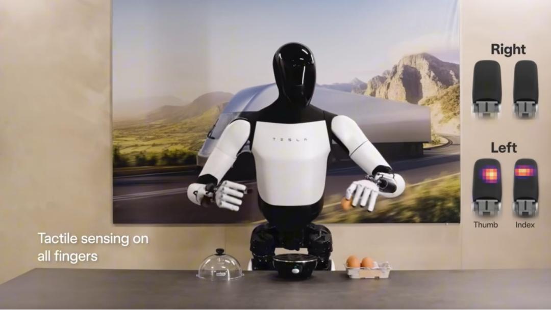 图:Optimus抓取鸡蛋及应用触觉传感器