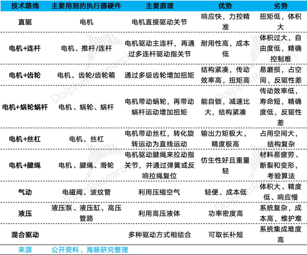 表:执行器技术路线比较