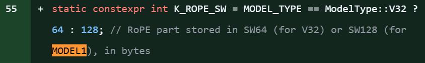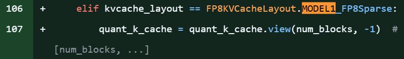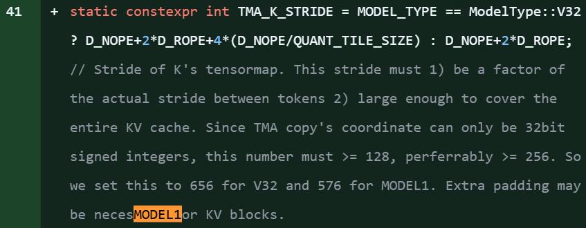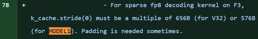 在DeepSeek的开源项目FlashMLA库代码片段明确引用了「MODEL1」,并且伴随针对KV缓存的新优化,和576B步幅的稀疏FP8解码支持。