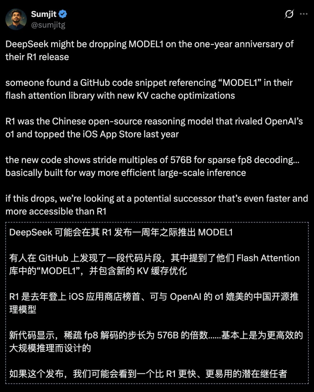 DeepSeek-R1发布一周年之际,核心算法库惊现MODEL1,是V4还是R2?