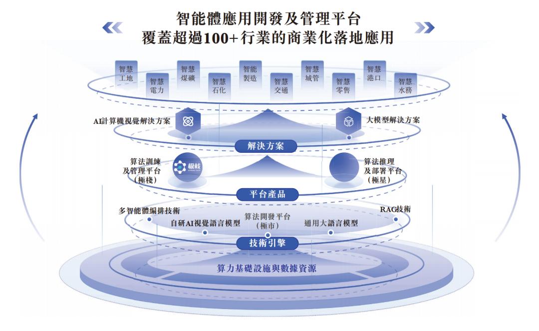 其在2025年第四季度推出了大模型解决方案的交付平台“极智”,提供包括知识库、插件库、模型库及MCP等功能模块,助企业客户将大语言模型与其特定业务需求进行集成。该业务在2025年前九个月大模型解决方案营收达0.25亿元,占总营收达35.6%,毛利率超35%。