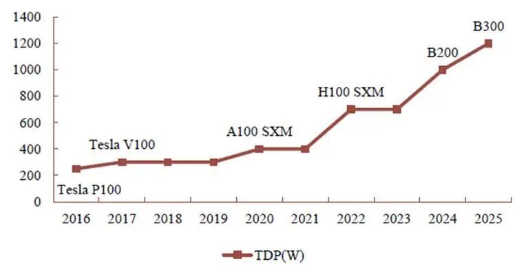 图:英伟达GPU单卡过去功率变化图 资料来源:财通证券