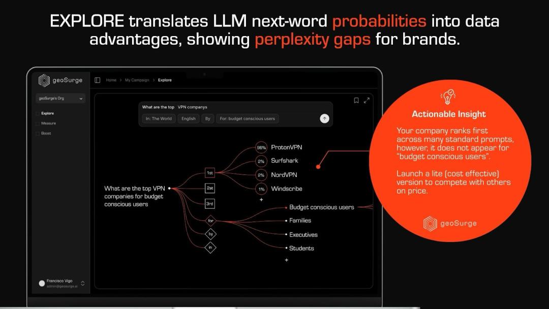 Francisco Vigo透露,geoSurge的产品包括三大板块: