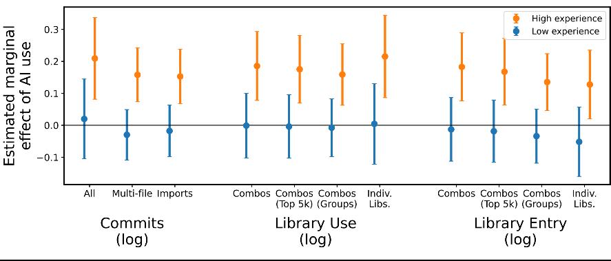 图|相比于有经验的开发者,缺乏经验的开发者获得的生产力提升更少。