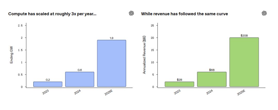 OpenAI的营收和算力规模以年均3倍的速度增长