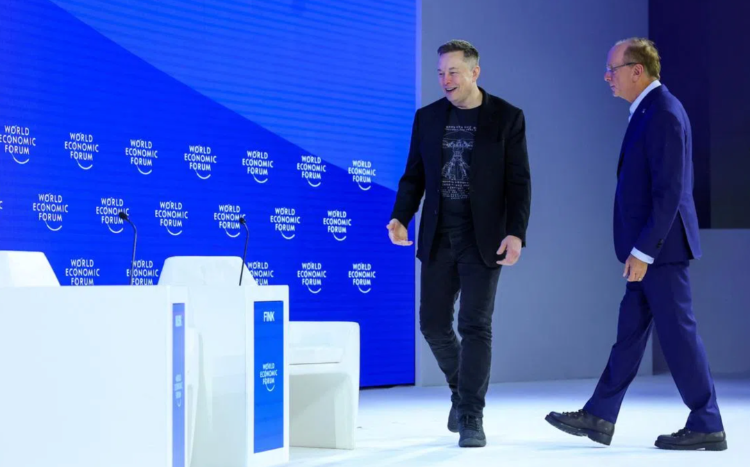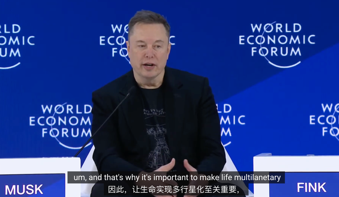 1月23日,马斯克和贝莱德CEO拉里·芬克同台对话,也是作为世界首富的他首次亮相达沃斯论坛。