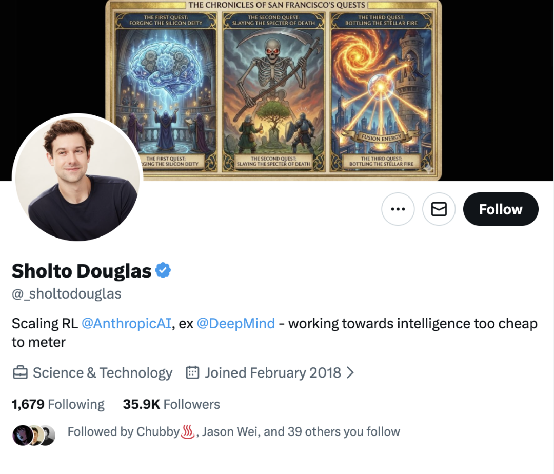 Sholto Douglas曾经就职于谷歌,是Gemini项目的重要推手之一。