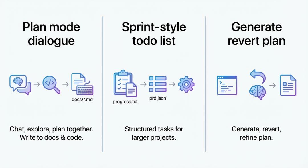 对于大任务,按Shift+Tab两次进入规划模式,或者直接在聊天中通过对话制定计划。