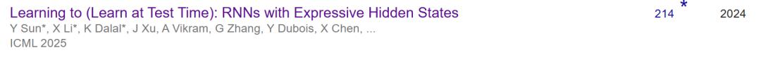 代表作:Learning to (Learn at Test Time): RNNs with Expressive Hidden States (ICML 2025)