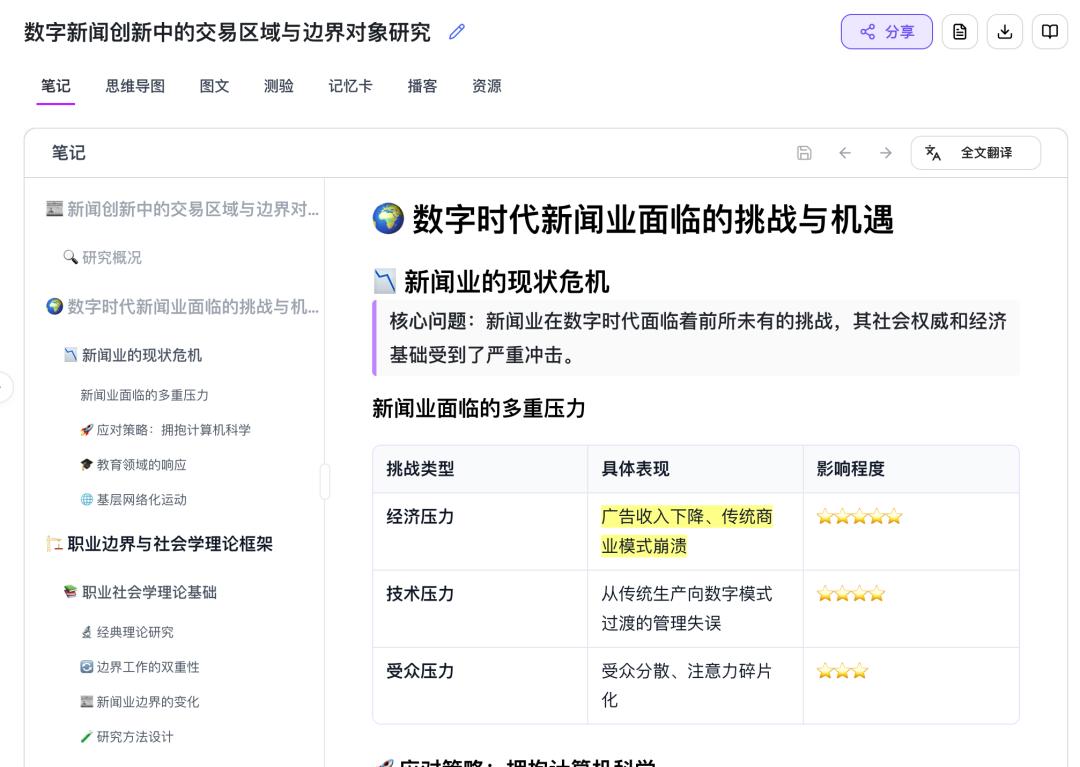 他们发现,即便ChatGPT、Claude、Gemini已经成为学生群体高频使用的AI工具,但面对大量、复杂、多模态的信息源,ChatBot只能做颗粒度较粗的信息归纳,无法快速理解其中最精华的内容,也无法理解各个知识点之间的层级关系。