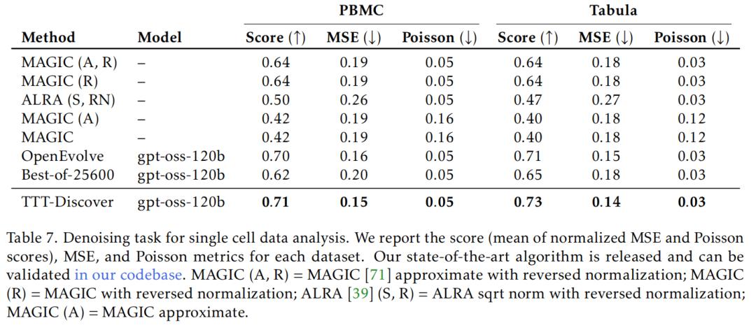结果显示,该方法在多种任务上取得了好成绩,包括击败了 DeepMind 的 AlphaEvolve;数学领域 在 Erdős 最小重叠问题上取得了新突破;在 GPUMode 竞赛中,开发出了比人类最佳内核快两倍的全新 A100 GPU 内核;在 AtCoder 测试中超越了最佳 AI 代码和人类代码;在单细胞分析的去噪任务中取得最好成绩……