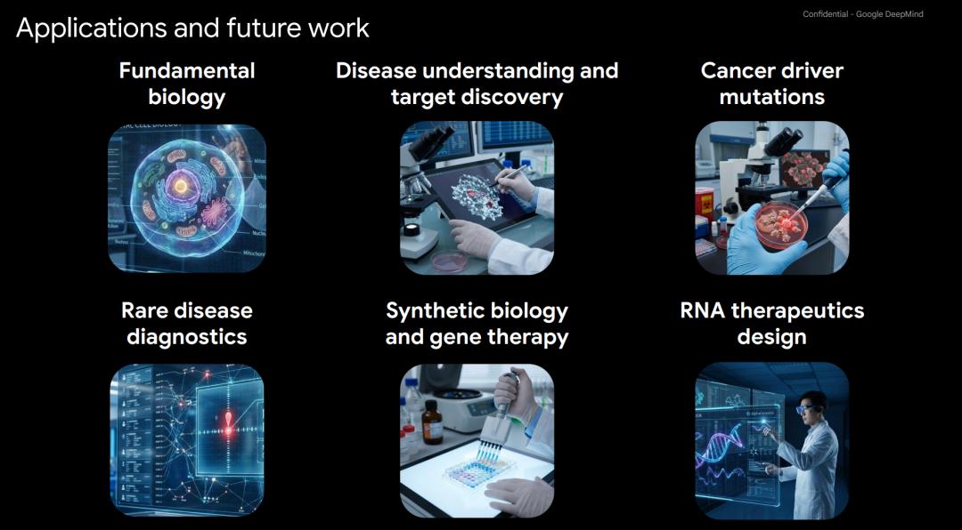 AlphaGenome 为未来的生命科学研究和医学应用开辟了广阔的前景,其强大能力将在以下三大领域发挥关键作用: