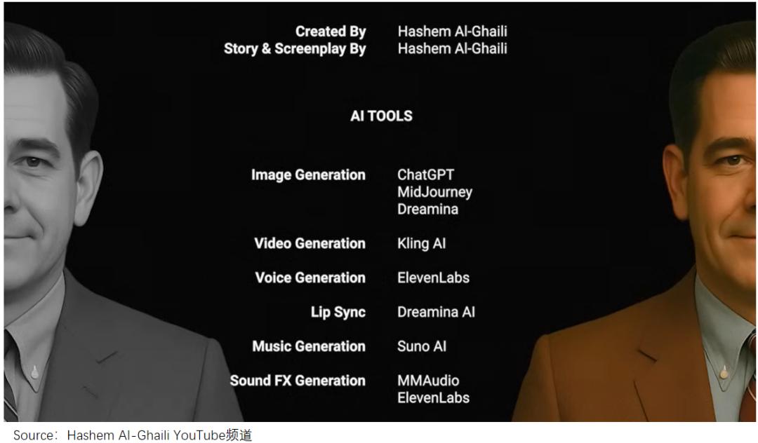 不过可灵也并非没有烦恼,海外AI短片《The Colorless Man》的创作流程,就给国内创作者带来了冲击:图像由ChatGPT、MidJourney和即梦处理,可灵负责视频,ElevenLabs处理语音,Dreamina处理唇形同步,Suno处理音乐,MMAudio处理音效。
