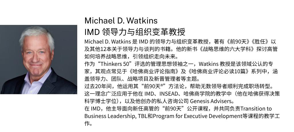 瑞士IMD国际管理发展学院(International Institute for Management Development,IMD)已有75年以上历史,始终致力于培养能够推动世界更加繁荣、可持续与包容的领导者与组织。IMD由一支专业且多元化的教师队伍领导,在瑞士洛桑和新加坡设有校区,并在中国深圳设有管理发展中心,致力于成为全球有志个人和组织最值得信赖的学习伙伴。IMD的高管教育和学位项目长期位居全球领先地位。这一持续领先源于IMD独特的“真实学习,真实影响(Real Learning, Real Impact)”教育理念。通过高管教育课程、工商管理硕士(MBA)、高级管理人员工商管理硕士(EMBA)项目及专业咨询服务,我们助力商业领袖找到更新更好的解决方案,挑战现状,启迪未来。