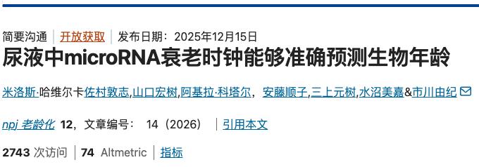 图:通过机器学习+microRNA 分析结合,科学家可以基于尿液预测人的年龄(来源:《npj·老龄化》)