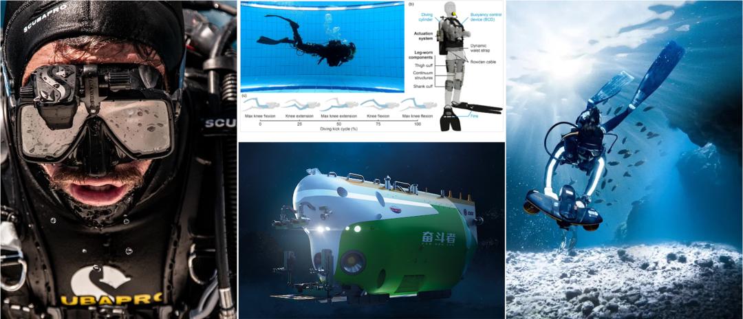 图:ScubaproGalileo HUD、北大水下外骨骼、“蛟龙”号潜水器、Sublue Navbow水下推进器(来源:互联网)