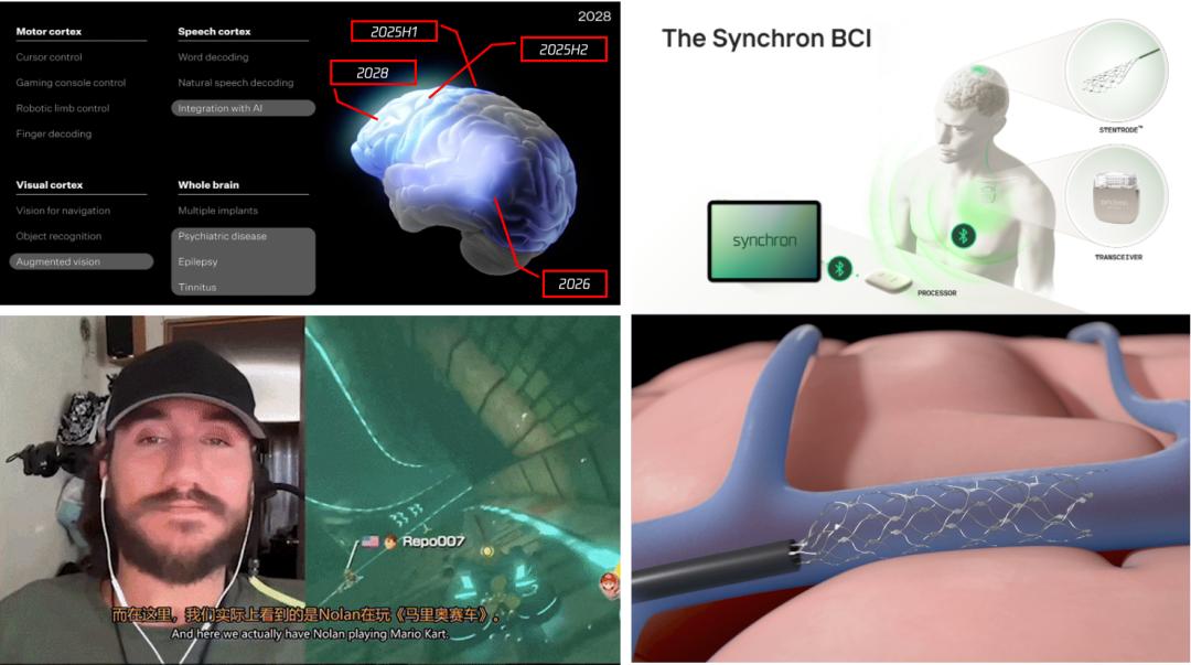 图:Neuralink 脑机接口规划和临床测试(左)、Synchron Stentrode血管介入脑机接口(右)(来源:互联网)