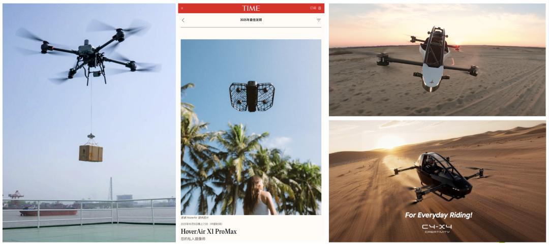 图:大疆FlyCart 30、零零科技HoverAir X1、Jetson Aero ONE、快轮科技Rictor X4(来源:互联网)