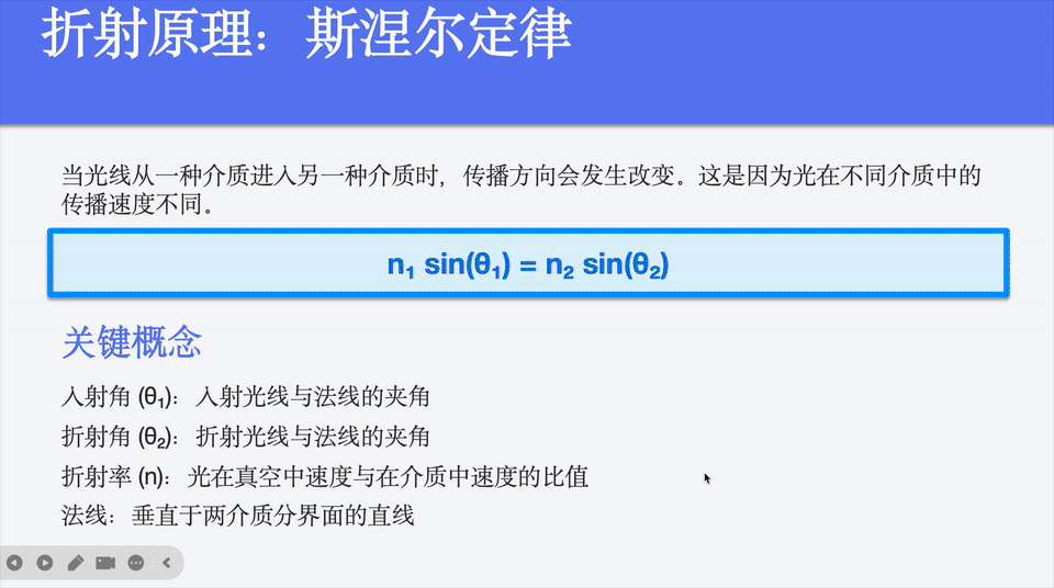 它还在PPT中植入了一个光的折射原理的交互式HTML,更直观展示了其背后的原理。