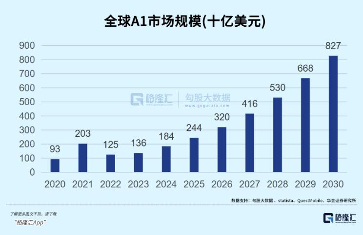 数据显示,2025-2030年全球AI市场规模将从2440亿美元飙升至8270亿美元,复合年增长率高达24%,远超物联网和公共云等热门领域。