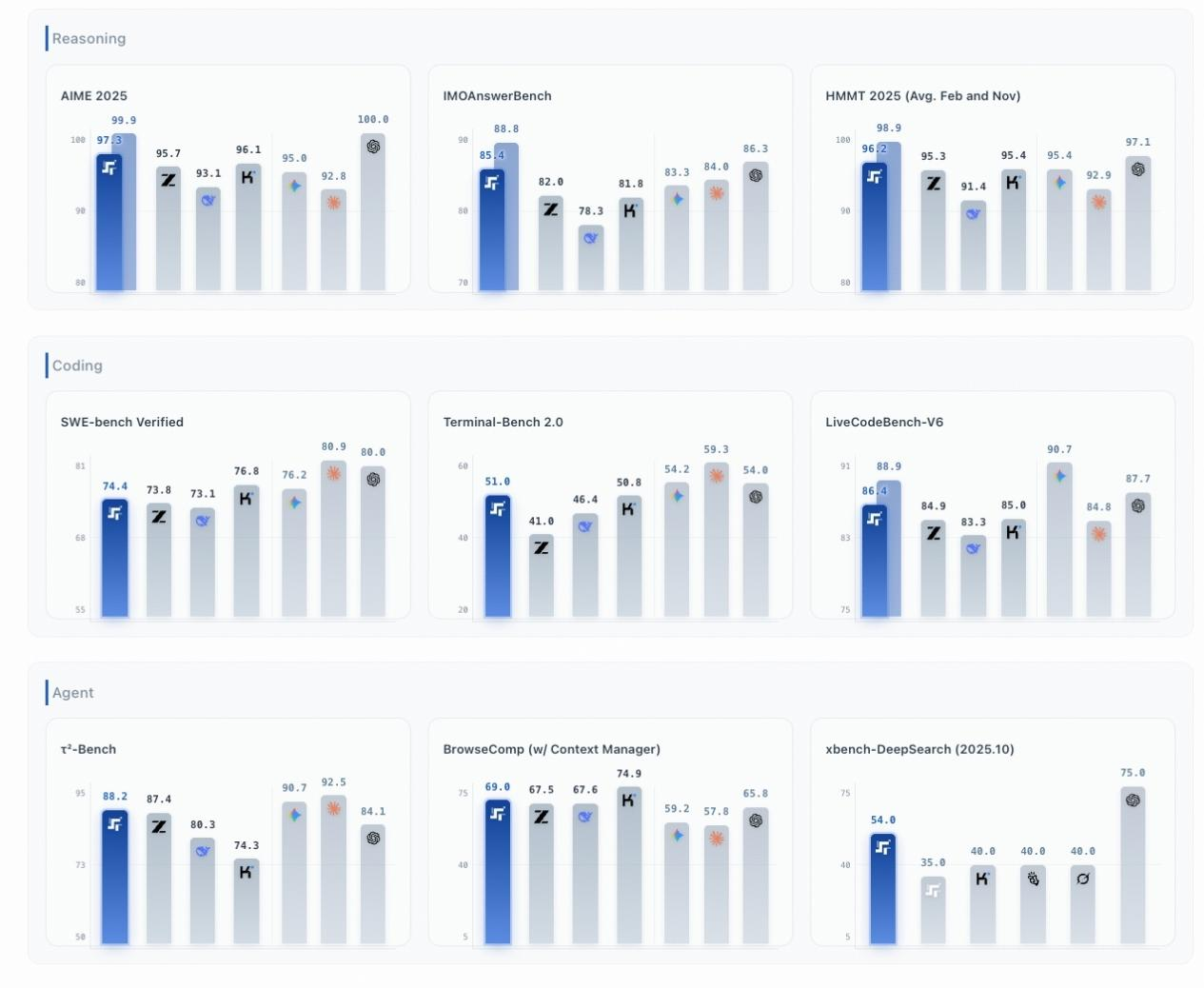 在针对智能体能力的τ²-Bench、BrowseComp等测试,以及LiveCodeBench V6代码挑战和AIME 2025数学竞赛中,Step 3.5 Flash均取得了亮眼成绩,且在Agent和数学任务上极具竞争力。这意味着当其面对需要结构化输出的多步推理、复杂逻辑求解、后端自动化和长时间运行等任务时,已具备支持企业级应用落地能力,尤其适用于高频工具调用和对行为可预测性有强要求的系统环境。